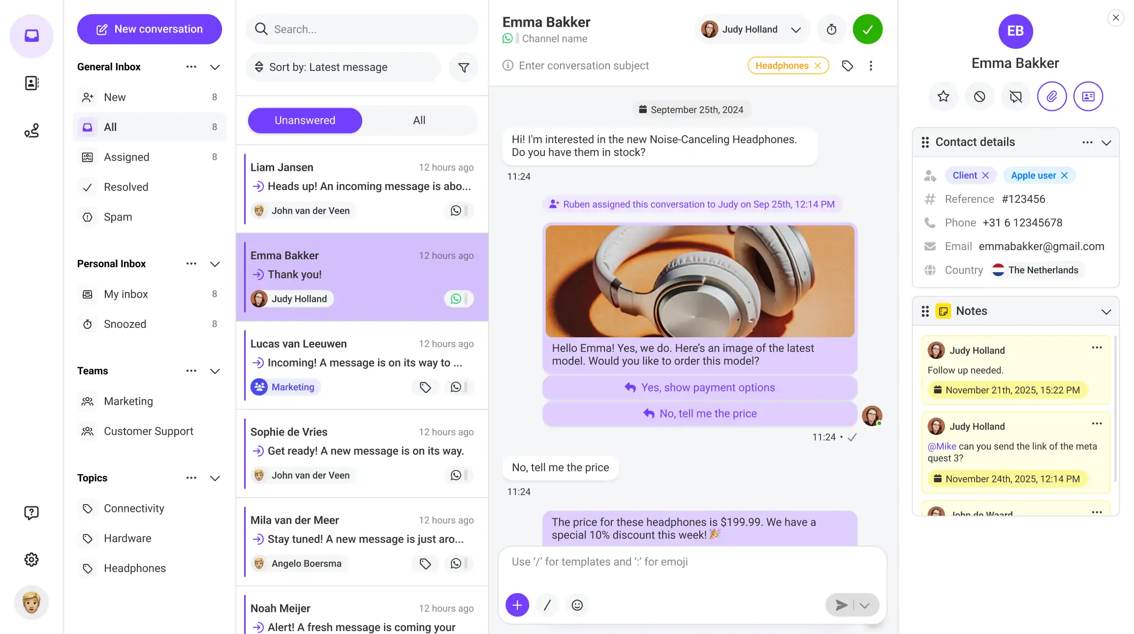 Fragmented communication across multiple channels leads to misunderstandings, duplicate responses, and lost context. With a single central inbox, you can keep track of every conversation, easily assign tasks to colleagues, and maintain an overview—anytime, anywhere.